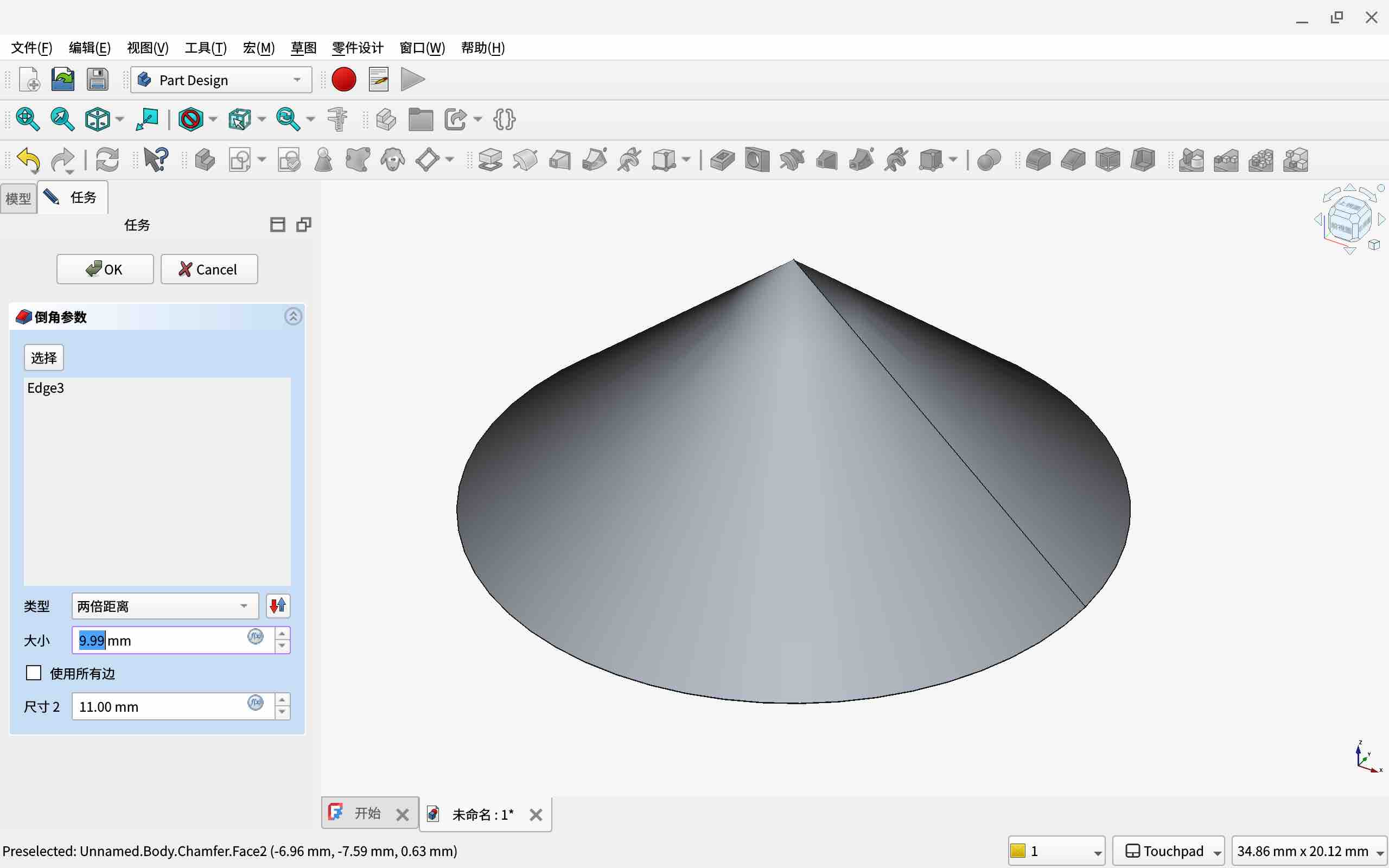 由于倒角不能超过/等于该侧长度,如果想要倒角至一侧底部(比如高),请减去0.001单位。